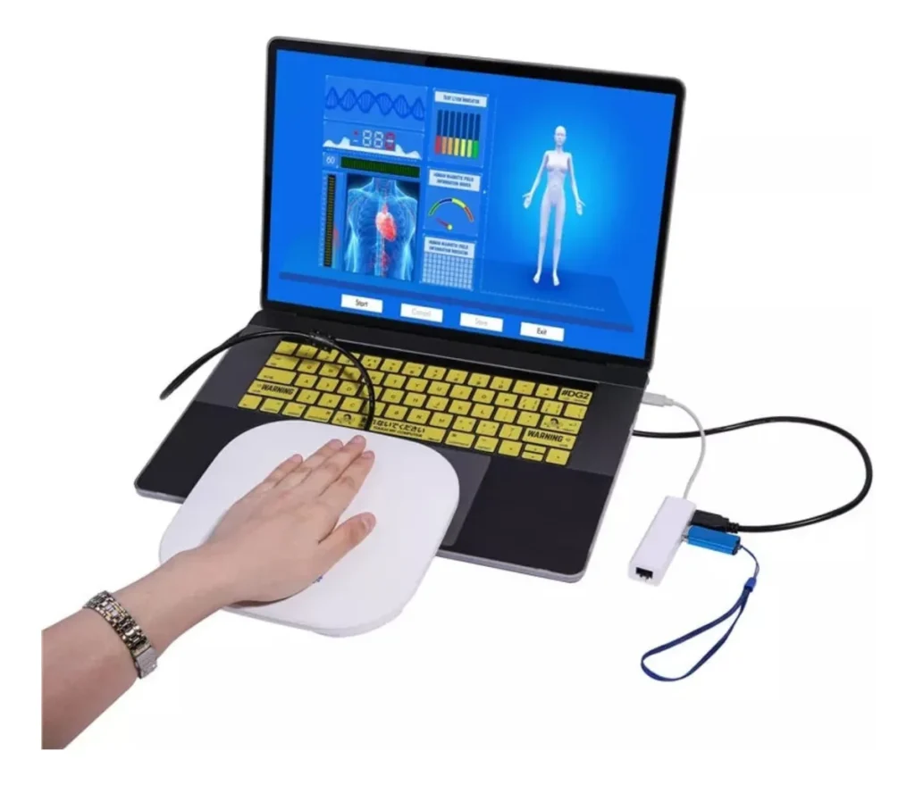 Através da medição da frequência dos órgãos, este aparelho elabora um diagnóstico completo sobre o estado do seu corpo.